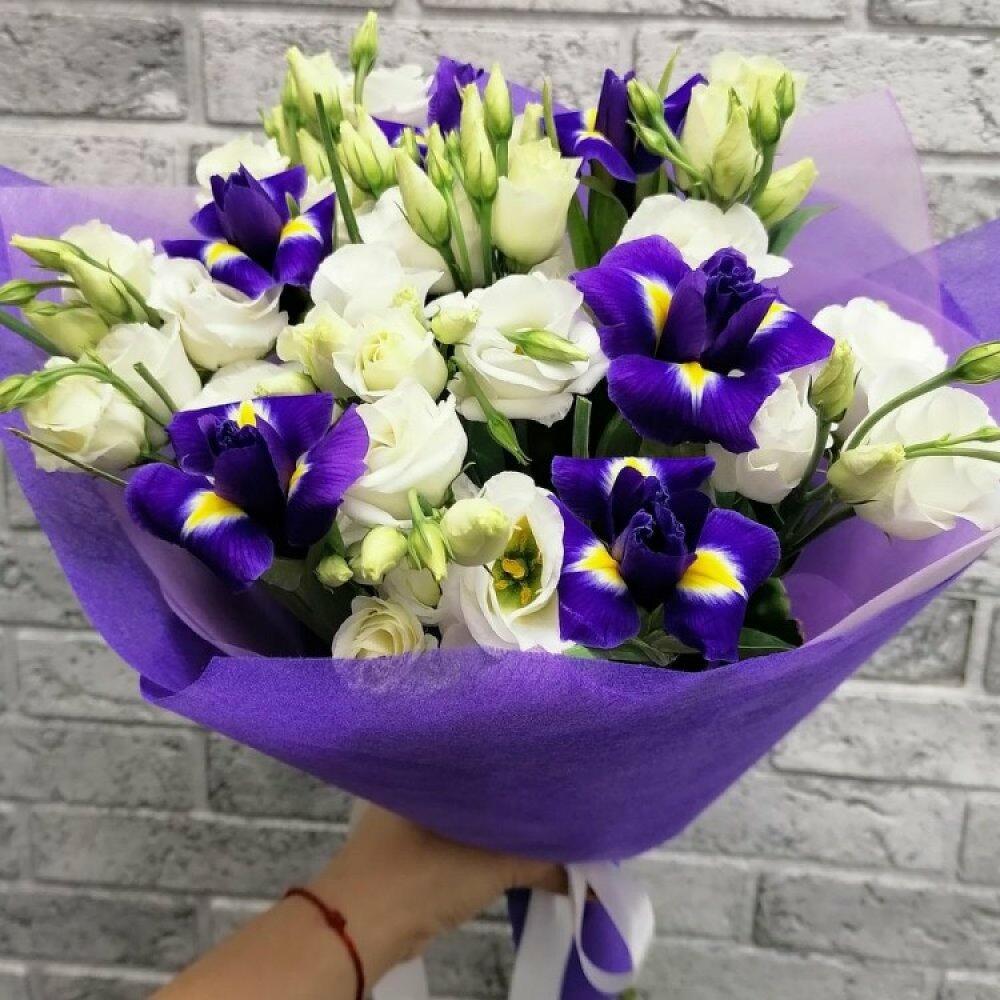 Прекрасная композиция из 9 лизиантусов (эустома) и 10 ирисов, которая создается индивидуально под каждый заказ! Выбирайте цвета по вашему вкусу из нашего разнообразного ассортимента. Если вам нужен конкретный цвет, просто уточните его при заказе! По вашему желанию мы также добавим любую зелень для дополнительного эффекта. Мы предлагаем различные варианты упаковки для вашего удобства. Обратите внимание: на фото представлен лишь образец!